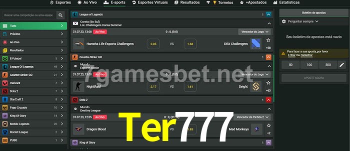 A aposta Ter777 oferece aos jogadores a experiência mais conveniente de apostas em eSports!